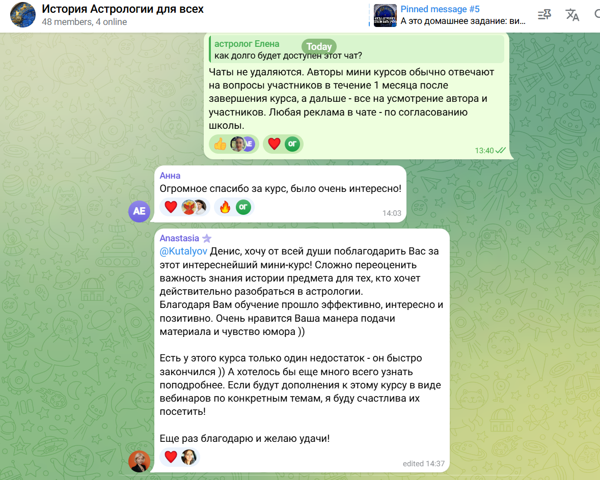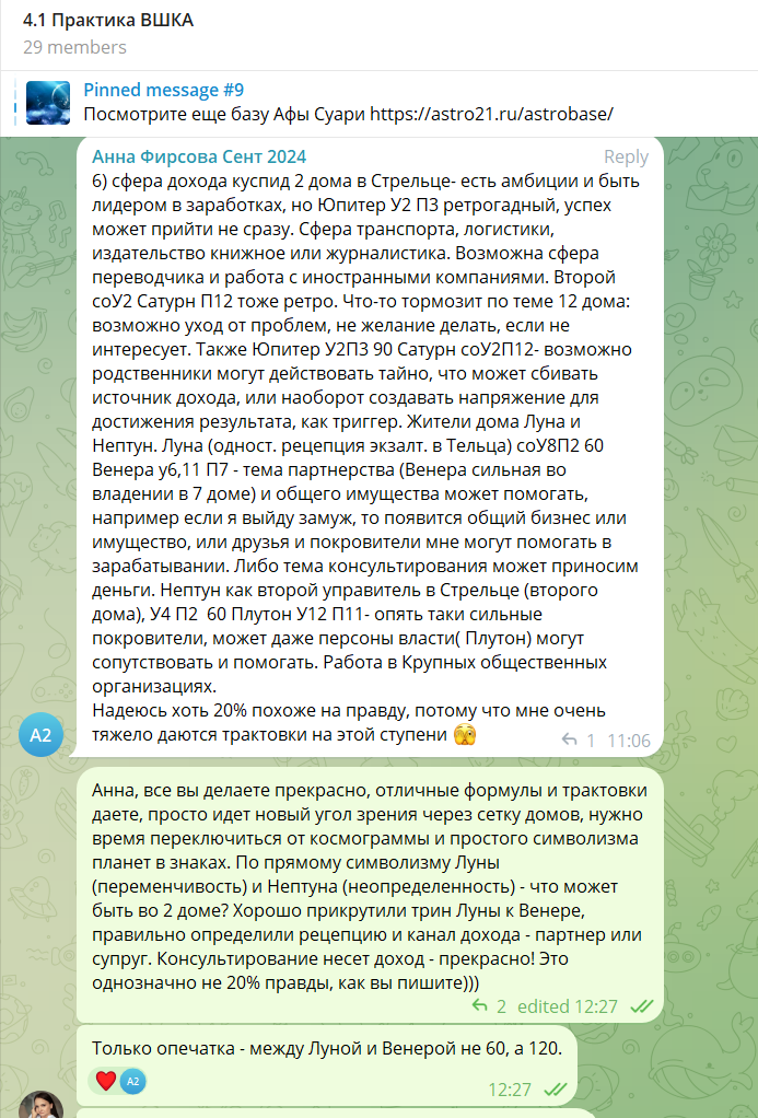 «Выражаем огромную благодарность нашему преподавателю — Александру Айчу! Спасибо, что все эти годы он делился с нами своими бездонными знаниями и разжигал огонь любви к Астрологии. Благодарим его за то, что был рядом и шел навстречу нашим ураническим идеям. Александр открыл для нас безграничную глубину эзотерических знаний и заинтересовал манящим новым миром. Из океана информации наш преподаватель, как проводник, доставал самое интересное, и что важно, преподносил знания с юмором и азартом первооткрывателя. А для новых студентов хочется отметить: обучение у Александра полезно, потому что, кроме знаний, получаешь инструменты их использования — методы и техники анализа разных типов карт, знание подходов к работе с клиентами. По итогам пройденного обучения мы ощущаем себя выпускником ВУЗа, а не школы, так как, хочется отметить высокий уровень информации, в том числе исторический срез и древние интереснейшие методики. С Уважением, Вера Фирулина и выпускники 2023 года обучения группы А. Айча. 15.12.2023»